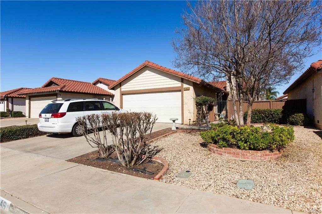 This single-story home opens up to a spacish patio before entering into the living room featuring a fireplace. When you are not utilizing the community clubhouse, swimming pool, or spa, enjoy a quiet read in the kitchen nook. Newer tile floor and central heating & air make moving in a breeze! LOW HOA fees - includes trash pickup